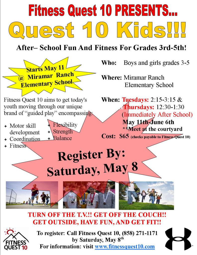 To register call Fitness Quest 10 at 858-271-1171