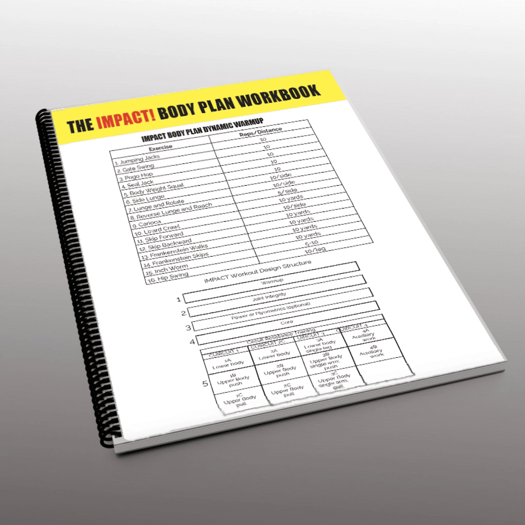 The IMPACT Body Plan book has changed thousands of lives. Part of the book is a 10-week Strength & Conditioning Program designed to transform the body, mind, and soul of anyone who goes through it.